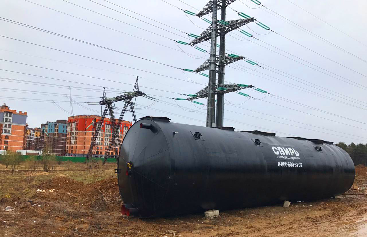 Установка «СВИРЬ» представляет собой подземную горизонтальную цилиндрическую емкость, снабженную внешними патрубками подвода сточных вод, отвода очищенных сточных вод, отвода промывных вод и перелива, люками для доступа и обслуживания.