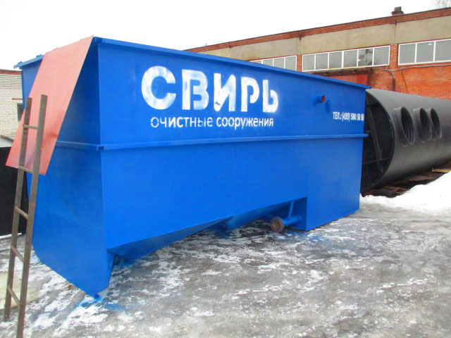 Установка «СВИРЬ» состоит из четырех технологических блоков, каждая из которых представляет собой горизонтальную цилиндрическую емкость с горловинами обслуживания, снабженную внешними патрубками подвода сточных вод, отвода осадка, отвода очищенных сточных вод, отвода промывных вод.